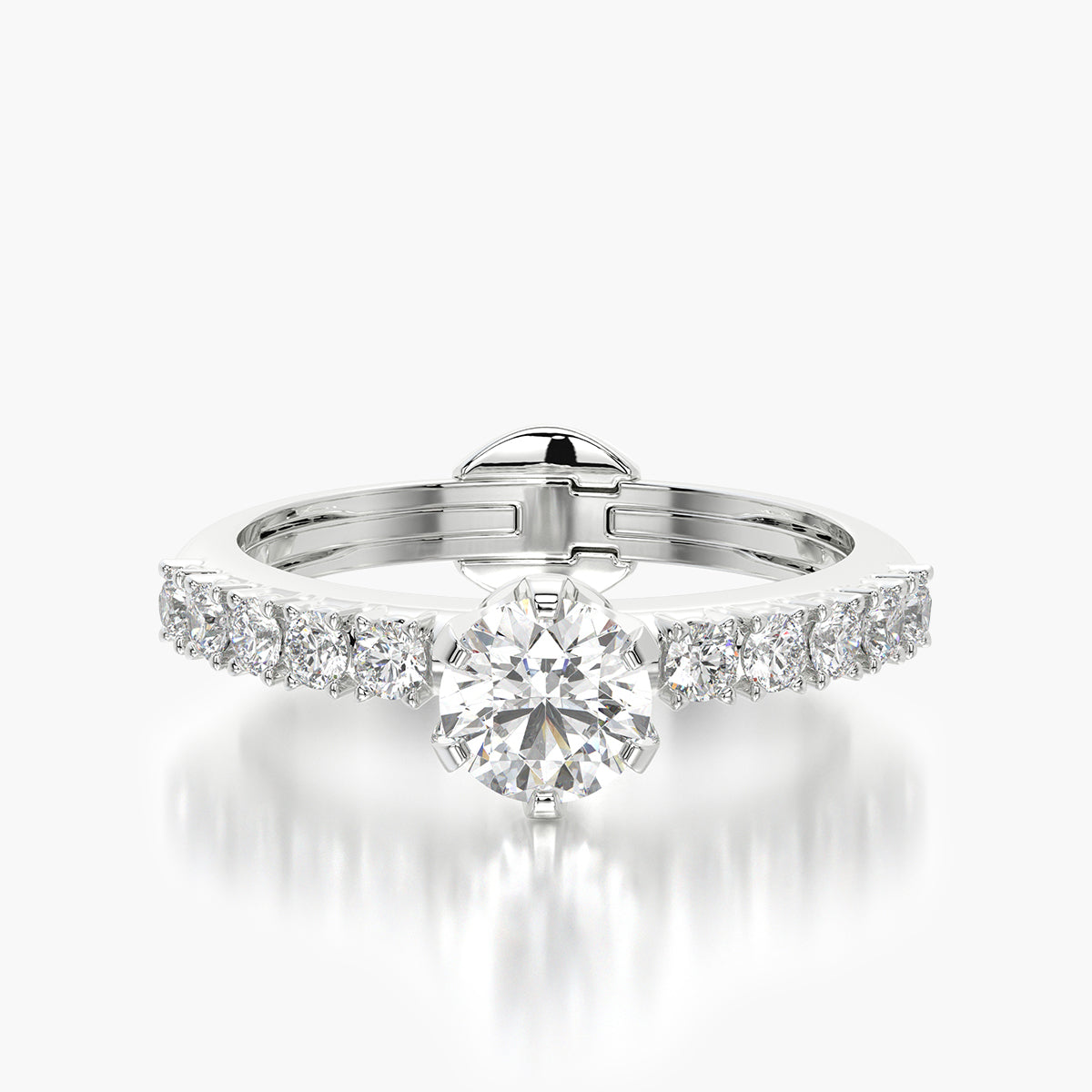 The Side Stone TRing features diamonds set along the band on both sides of the center stone, adding depth and refined detail to the design.